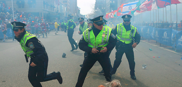 | Boston Police react during bombing... |