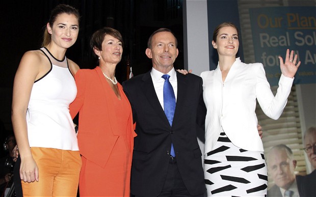 In Australia the conservatives are known as the Liberal Party and the leftists are called The Labour Party. Cut girls by the way. I wish Australia the best of luck. They've finally been able to shed the leftist crap now, so let's see what this guy can do. If Australia starts looking like a good place to be, you might begin to see an increase in immigration there.