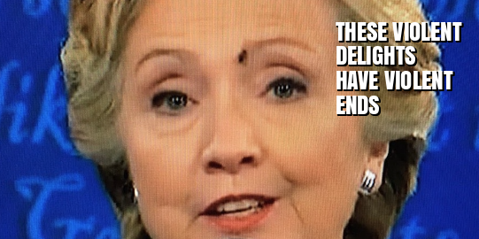 So is Hillary a robot not programed to recognize the fly on her face, a reptilian creature who had to resist flicking out a tongue to eat the fly on live TV, or has she just had so much botox that she couldn't feel the fly on her face?